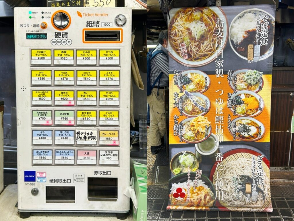 東京メトロの浅草駅構内、浅草地下街にある名店「文殊」へ。地下街へ下る入口は、何かに吸い込まれそうな何とも言えない不思議な雰囲気…。立食い蕎麦の店は綺麗すぎるより多少枯れた昭和感が残っていると嬉しいけど、その点でこの店は最強!地下街全体がタイムスリップした気分に浸れる異質な空間で、その入口に鎮座する「文殊」の存在感は半端ない。人通りが多く時間帯によっては落ち着かないロケーションも生活感が溢れた風情で堪らない。立地のインパクトが余りにも強いけど…蕎麦+玉ねぎ多めのかき揚げも美味です。ご馳走様でした!