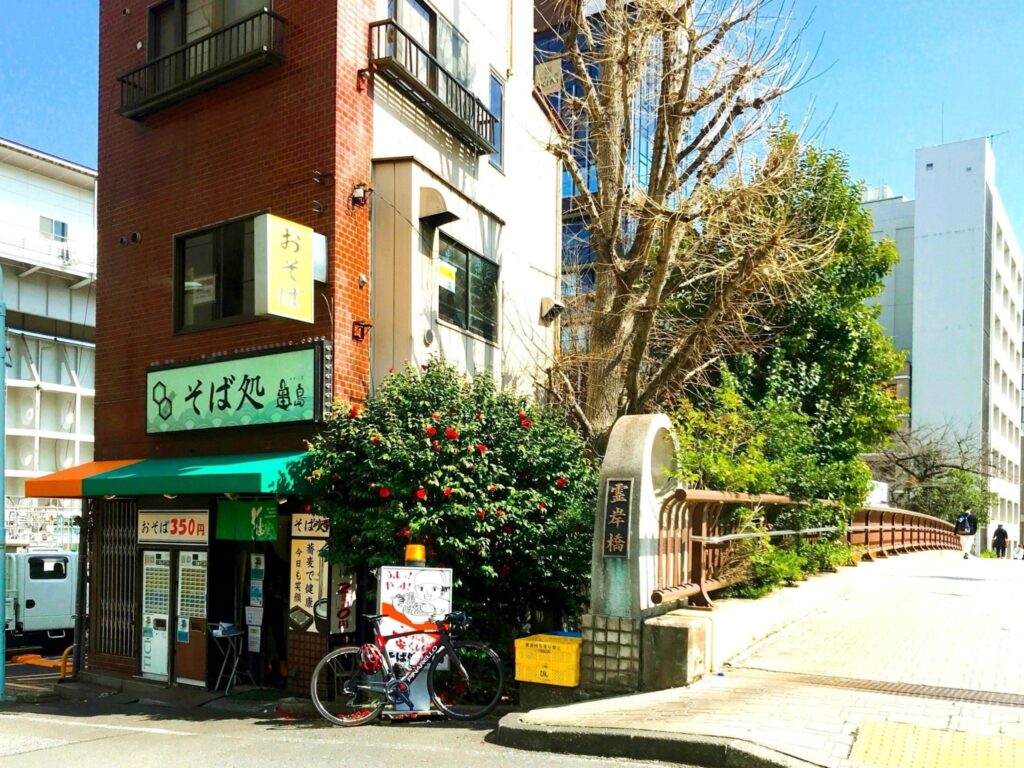 証券会社が集まる茅場町の中心にありながら、霊岸橋の脇というなかなか味のあるロケーションが印象的な「亀島」へ。快晴のなか東京駅から軽くジョグしてきたので、注文はさっぱりと「冷したぬきそば」で。よくある平皿ではなく、深めの丼につゆがたっぷり。しっかり冷水で締められた白く細めの蕎麦はコシ&喉越し申し分なく、たっぷりのワカメ&天かすを絡めて一気にかきこむ…真夏日の至福の冷し蕎麦タイム、最高!食後は、もりそば用のつゆ器で別添してくれているそば湯を投入し、さっぱりと完食。「亀島」という店名は近くを流れる亀島川に由来。当店の運営会社は他に「天かめ・亀よし」など名称を変えながら複数店舗を展開しているようだけど、「亀」の付く店名が多いのはこの「亀島」が大元ということなのかな?ご馳走様でした!