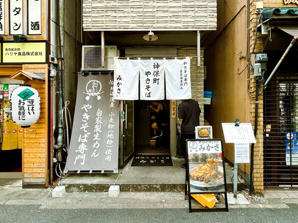 飲食店の多い学生街、神保町から水道橋へ向かう白山通り沿いにある、焼きそばの名店「みかさ」へ念願の初訪店。カウンターのみの無機質でシンプルな店内はソースのいい匂いが漂い、入店した瞬間からテンションUP。まずは食券を購入。渡す時に麺の量を聞かれ、大盛と迷ったけど今回は様子見で「並」を注文。5分程で、熱々のステンレスの器にたっぷり盛られた焼きそばが着丼…並でも十分なボリューム感。甘辛旨いソースがたっぷり絡んだ平たい太麺(北海道産小麦100%)に、トロトロの半熟玉子、カリカリの豚肉、シャキシャキのねぎが乗り、どこから箸を入れても一番感動する最初の一口気分を味わえるような贅沢仕様で超絶美味い!さらに卓上には、紅生姜・天かす・マヨネーズが大型容器で置かれ、味変も遠慮なくガッツリと仕掛けられる万全の環境。細麺にたっぷり青海苔の縁日屋台・極太麺に濃厚ソースの鉄板焼屋など、焼きそばも店によって様々な「らしさ」があって、これもまた「みかさ」でしか食べることのできない「みかさ」ならではの本物の味…と思っていたら、2024.3月より神宮球場に分店「みかさ威風」がオープンしたとのこと。これはスワローズファンには堪らない朗報ですね。ご馳走様でした!