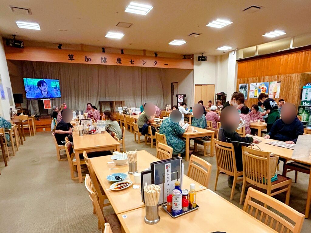 サウナ愛好家の聖地「草加健康センター」でランチタイム。専門店にも引けを取らない豊富なメニューで目移りするけど…サウナではいつも「冷したぬきそば」を注文するので今回も”いつもの”やつで。つゆ&山葵が別添で、自分で仕上げる本格派。冷水でしっかり締められた平たい乱切りの自家製手打ち蕎麦は、胡瓜の食感と合わさってサッパリ感抜群。天かすが香ばしさを加えて食欲増進。とにかく…サ飯(サウナ飯)として最高の一杯!サウナは、容赦ない高温サウナ+キンキンの水風呂で最高の「整い」完了。草加の聖地で、身も心も胃袋も、極楽&至福の昼下がりを満喫しました。ご馳走様でした!