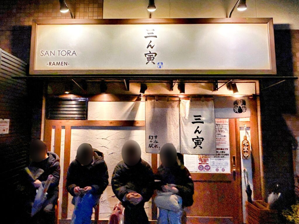 神田川と首都高が平行して走る江戸川橋駅前、下町感と都心感が同居する落ち着いた街角の路地裏にある超人気店の「三ん寅」へ初訪店。店主は味噌ラーメンの名店「すみれ」で17年修行されており、都内では数少ない公認(純すみ系)の店。TRYラーメン大賞をはじめとした受賞歴も多く、一番人気の味噌は今や東京を代表する味噌ラーメン店の一つ。コクと旨味のある濃厚な味噌スープを、黄色がかった西山製麺の中太縮れ麺がしっかり絡めとり…美味さも満足感も半端ない!一匙のおろし生姜を少しづつスープに溶かしながら、ホロホロに柔らかい肩ロースのチャーシュー・黄身が超濃厚な味玉と一緒にスープを一口、そして麺をすすり…スープで流し込む、至福のループであっという間に完食!今日の様な寒い日は熱々の味噌ラーメンが恋しくなる…そんな気分にこれ以上ない最高の味噌ラーメン、開店30分前から並んだ甲斐がありました。ご馳走様でした!