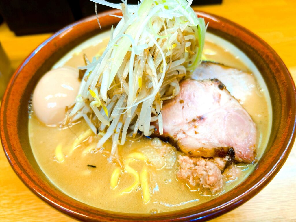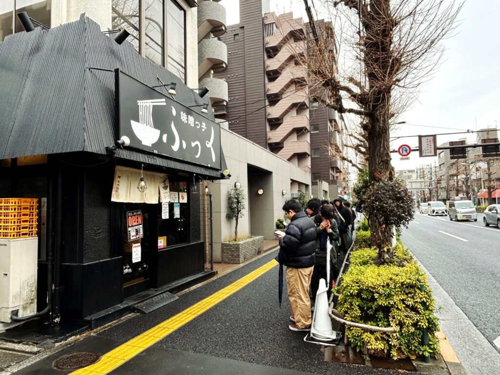 荻窪駅北口から青梅街道を西へ約5分。環八と交差する四面道交差点の先にある「味噌っ子 ふっく」が今日の目的地。今東京でもっとも人気のある味噌ラーメン店の一つで、行列必至なので足が遠のいていたけど…念願の初訪店。まず列に並び、自分の前の人が食券を買って戻ってきたら自分が食券を買って列に戻る「リレー式」。寒空の待ち時間が丁度よく…温かい味噌ラーメンを身体がMAX欲したベスコンで入店。名店「花道」で修業された店主が更に工夫を重ねた独自の濃厚味噌スープは程よく甘さもあり一口目から感動の美味さ、三河屋製麺の弾力ある太麺との相性も最高、山のように盛られた炒めもやしはシャキシャキ、チャーシューは肉感抜群で、味玉はこれ以上ない半熟具合・・・とにかく美味過ぎる!今冬も終盤戦の2月半ば…味噌ラーメンを味わうのに最適な寒空の日、最高の味噌ラーメンを頂くことができました。これで自分の今年の冬は中締めです。ご馳走様でした!