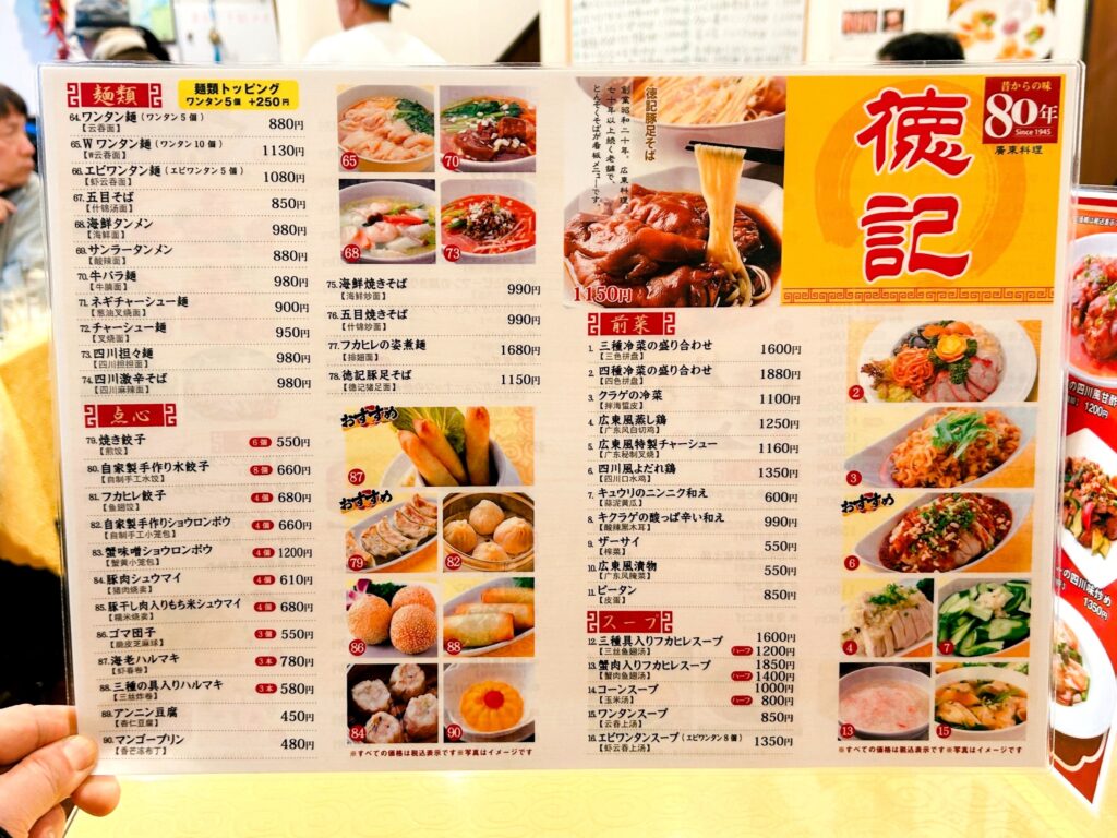 きらびやかな中華街の中でも一際目立つ寺院「横浜関帝廟」から、通りを挟んだ向かいの路地裏にある「徳記」へ。1945年に製麺卸として創業以来80年の歴史を持つ老舗の広東料理店で、創業当時の味を受継いでいると言われる看板料理の「豚脚麺(豚足そば)」を求めて久々の訪店。もっちりした平打ち麺は喉ごし良く、シンプルなスープと相まってこのままでも十分美味い。メインの豚足はあり得ない程に柔らかくプルプルな食感。王道の食べ方は、この豚足が煮込まれた甘くとろみのあるタレに麺をダイブさせ、箸でほぐした豚足と一緒にすする…濃厚で美味い!あっさり+こってりを一杯で両方味わえる「THE広東風つけ麺」、美味しく&楽しく堪能させて頂きました。ご馳走様でした!